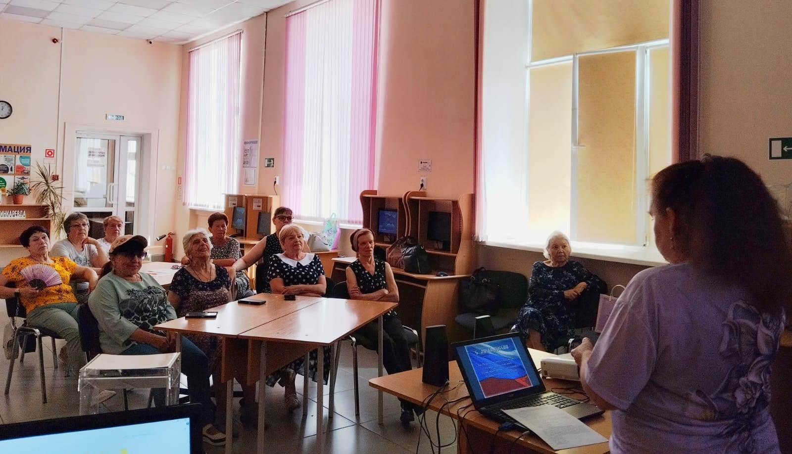 9 июня для читателей старшего поколения в Центральной городской библиотеке имени А.С. Пушкина представили музыкальную гостиную «И льются песни над Россией», посвященную песням о России. Гости с удовольствием слушали песни «Увезу тебя я в тундру», «В краю магнолий», «Земля моя», «Матушка Россия», «Я люблю тебя Россия» и др.