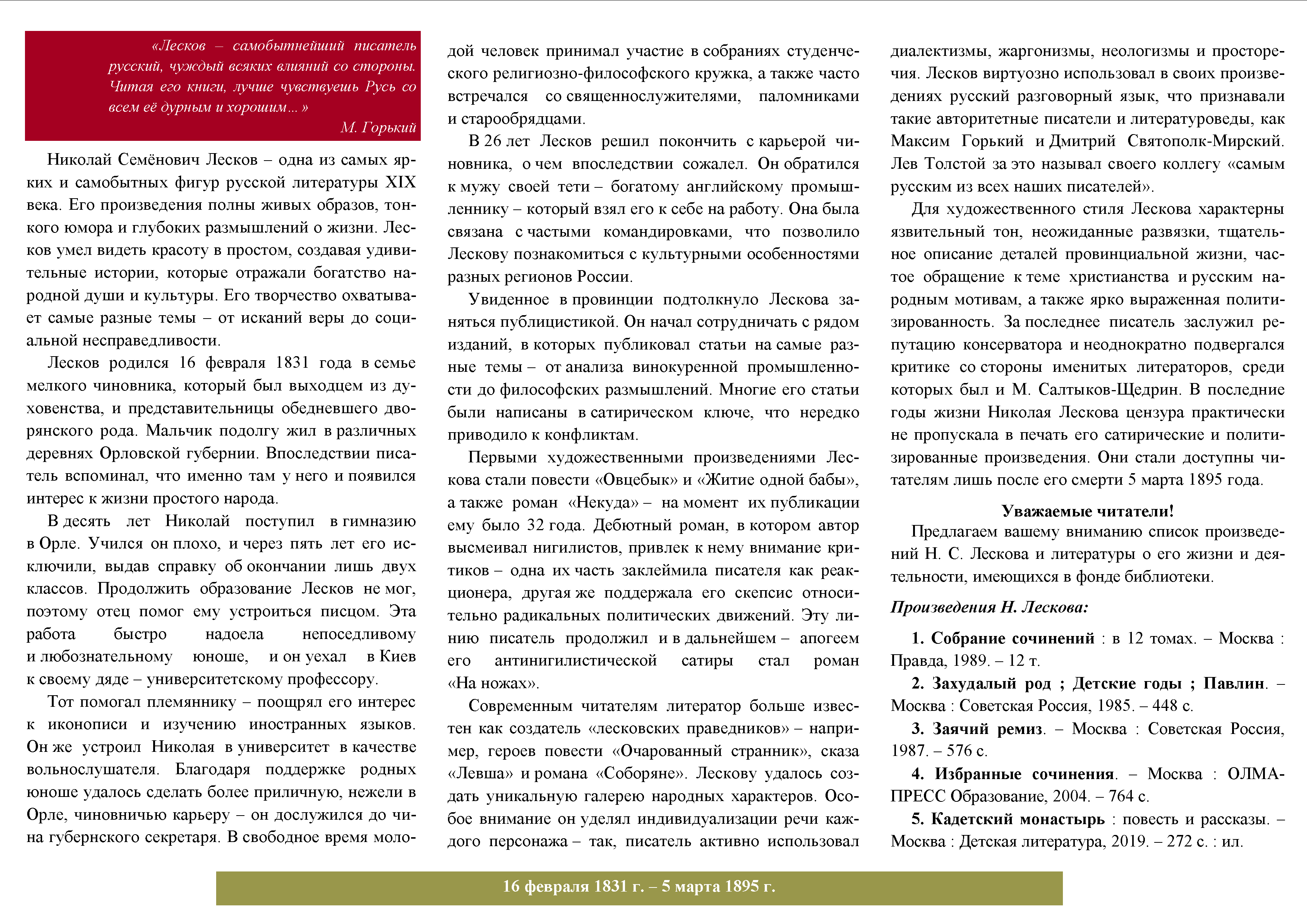 Библиографический список к 200-летию со дня рождения писателя