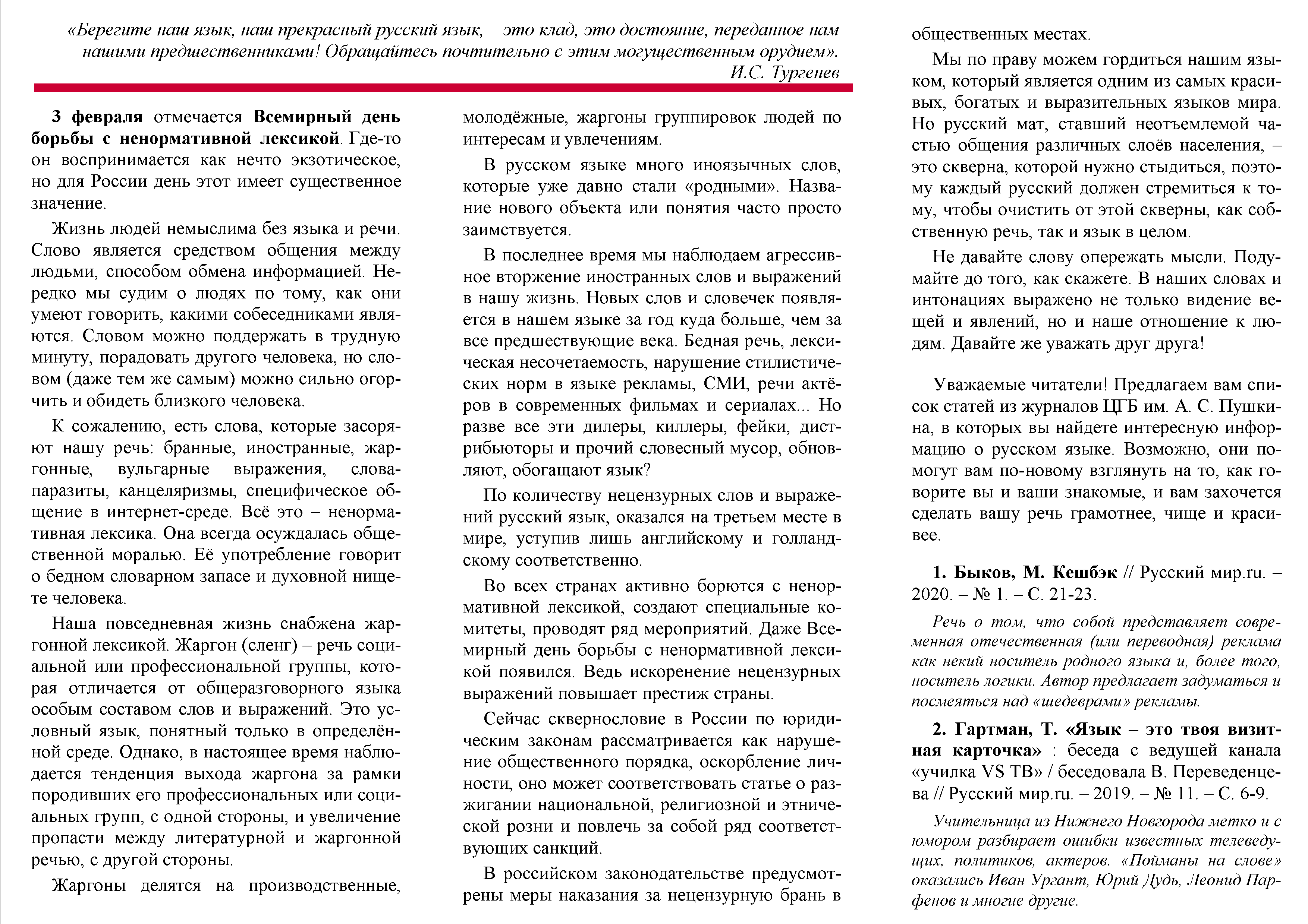 Библиографический список к Всемирному дню борьбы с ненормативной лексикой