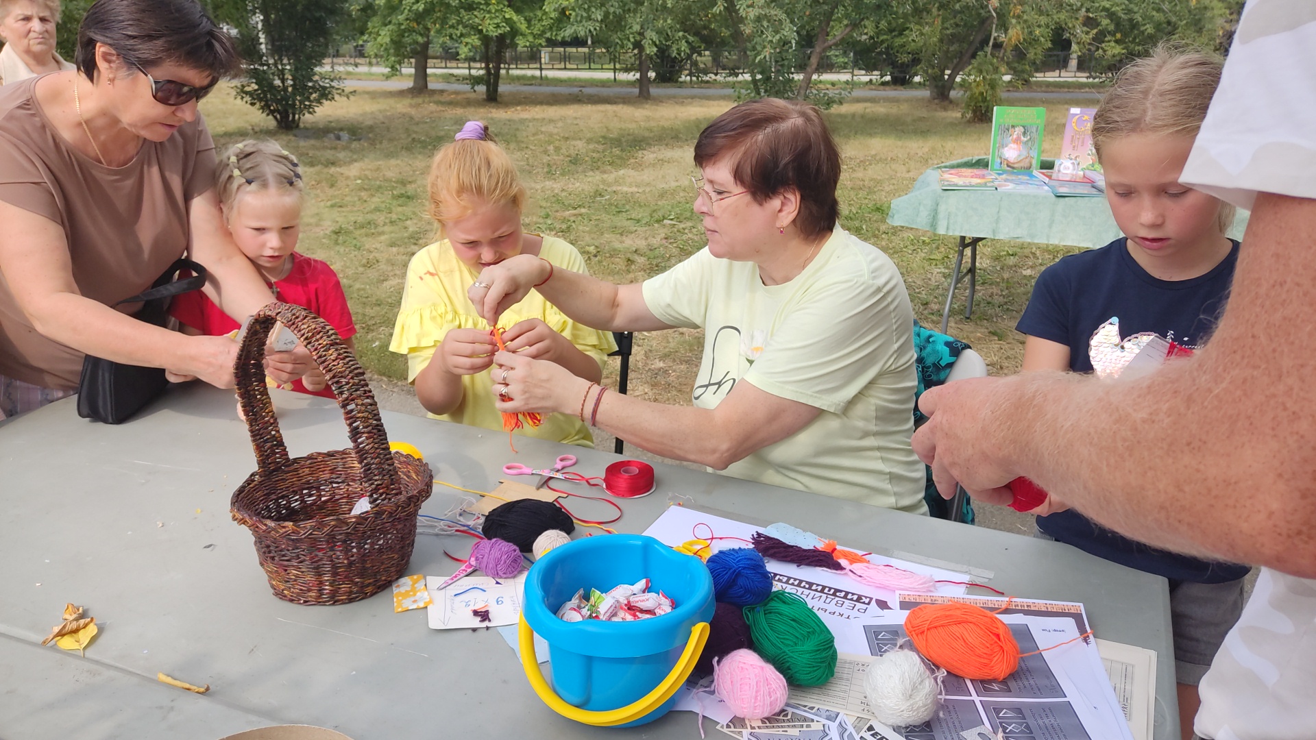 Сотрудники из городской библиотеки №2 предлагали гостям праздника создать карту народов Среднего Урала, а под руководством Елены Николаевны Супликовой можно было сделать куколку из разноцветных ниток с чертами разных народностей.