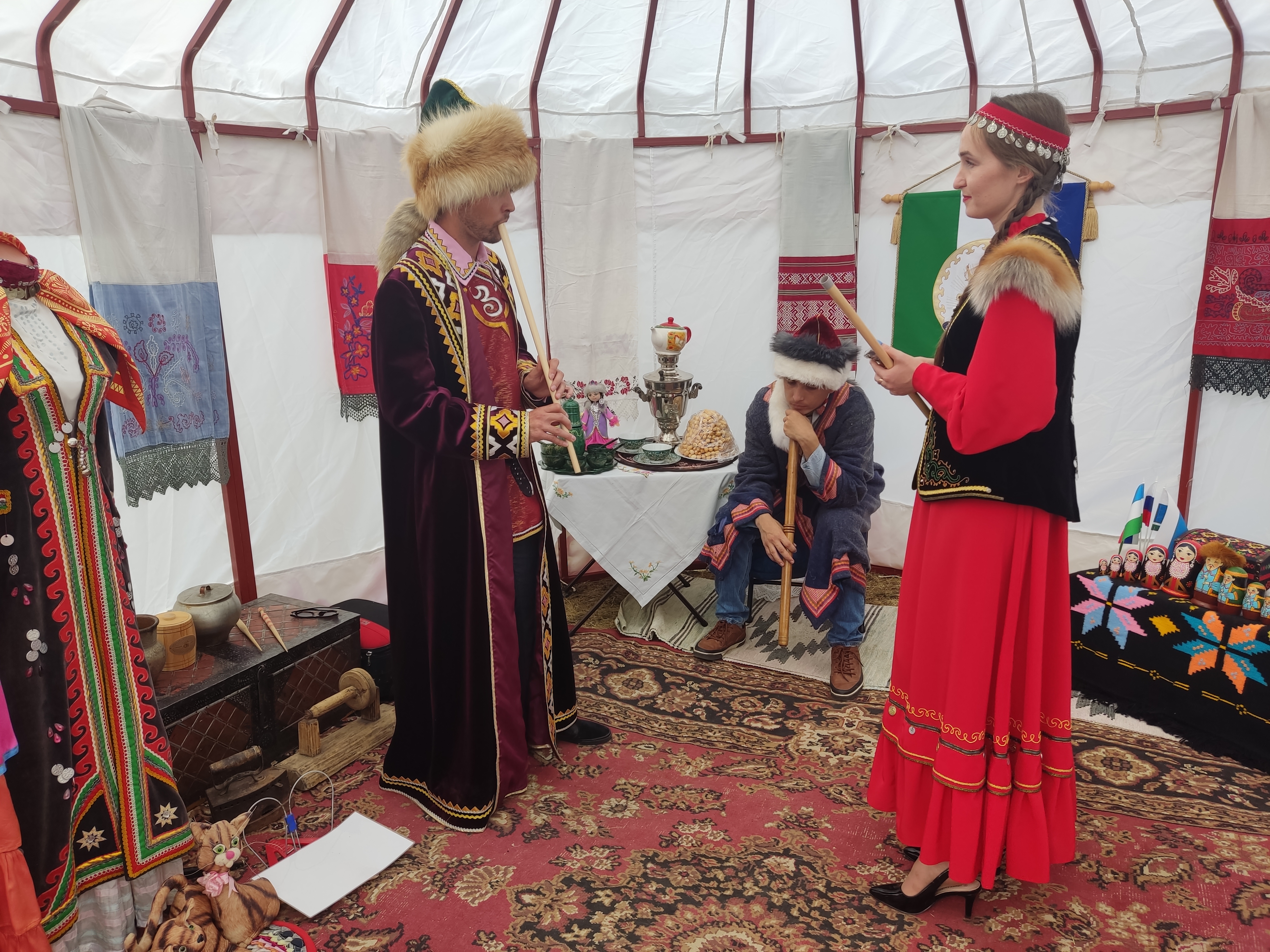 Представители башкирской диаспоры разместились в национальной юрте и привлекали к себе удивительной мелодией курая (национальный музыкальный инструмент).