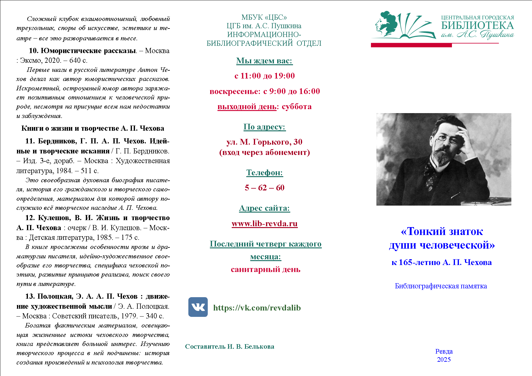 Библиографическая памятка к 165-летию А. П. Чехова