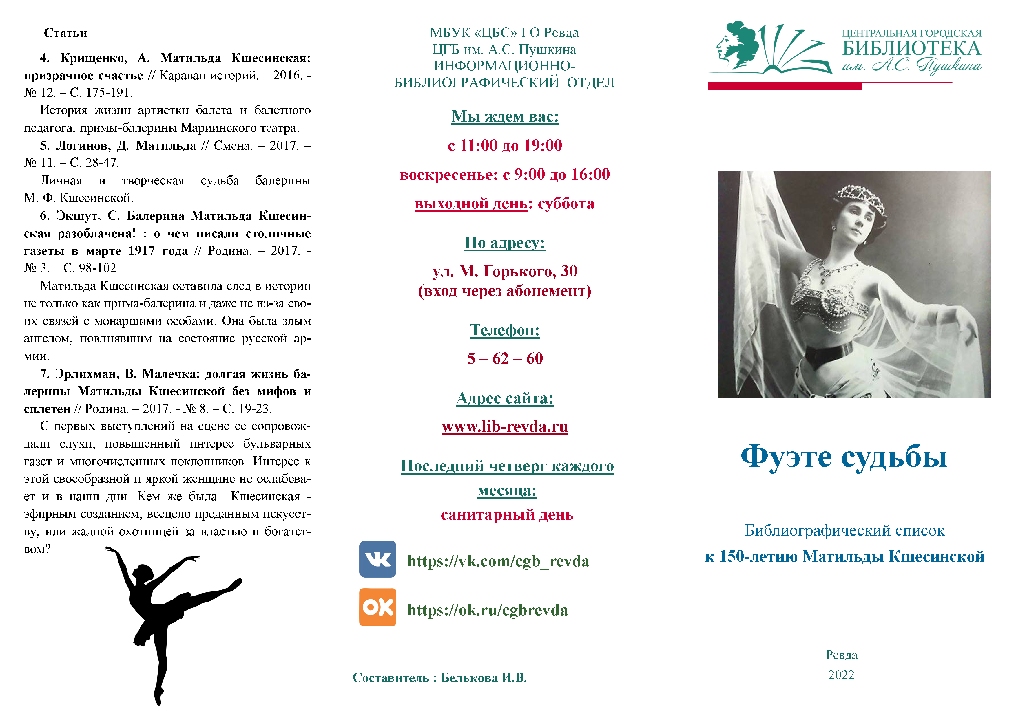 Библиографический список к 150-летию Матильды Кшесинской "Фуэте судьбы"