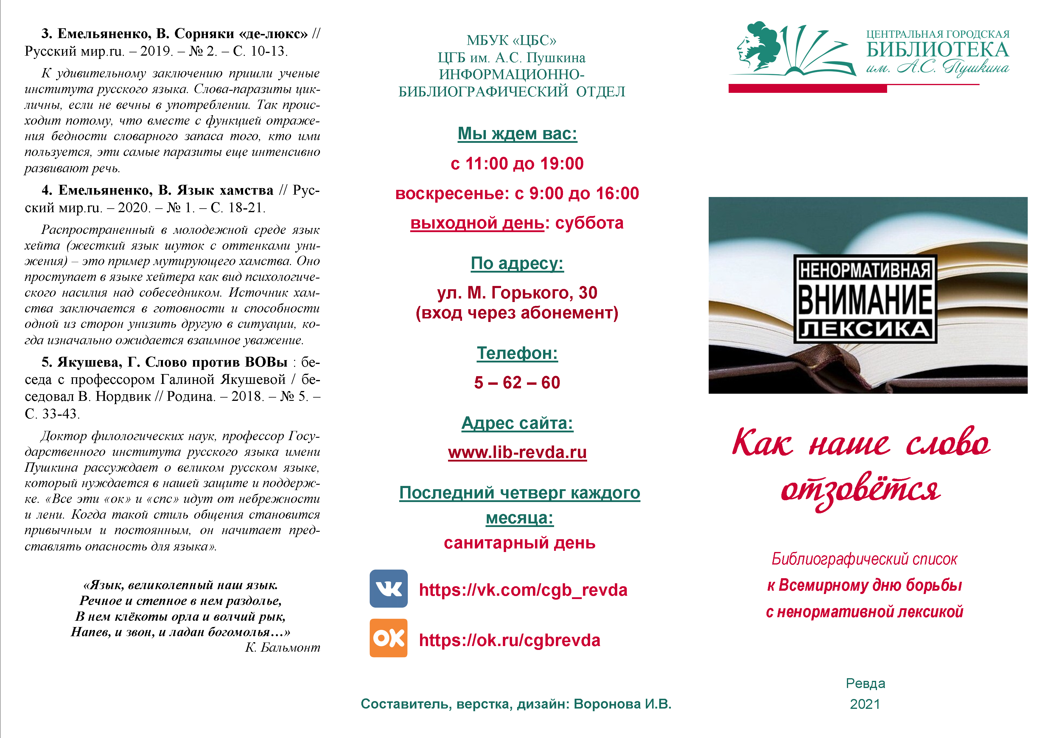 Библиографический список к Всемирному дню борьбы с ненормативной лексикой
