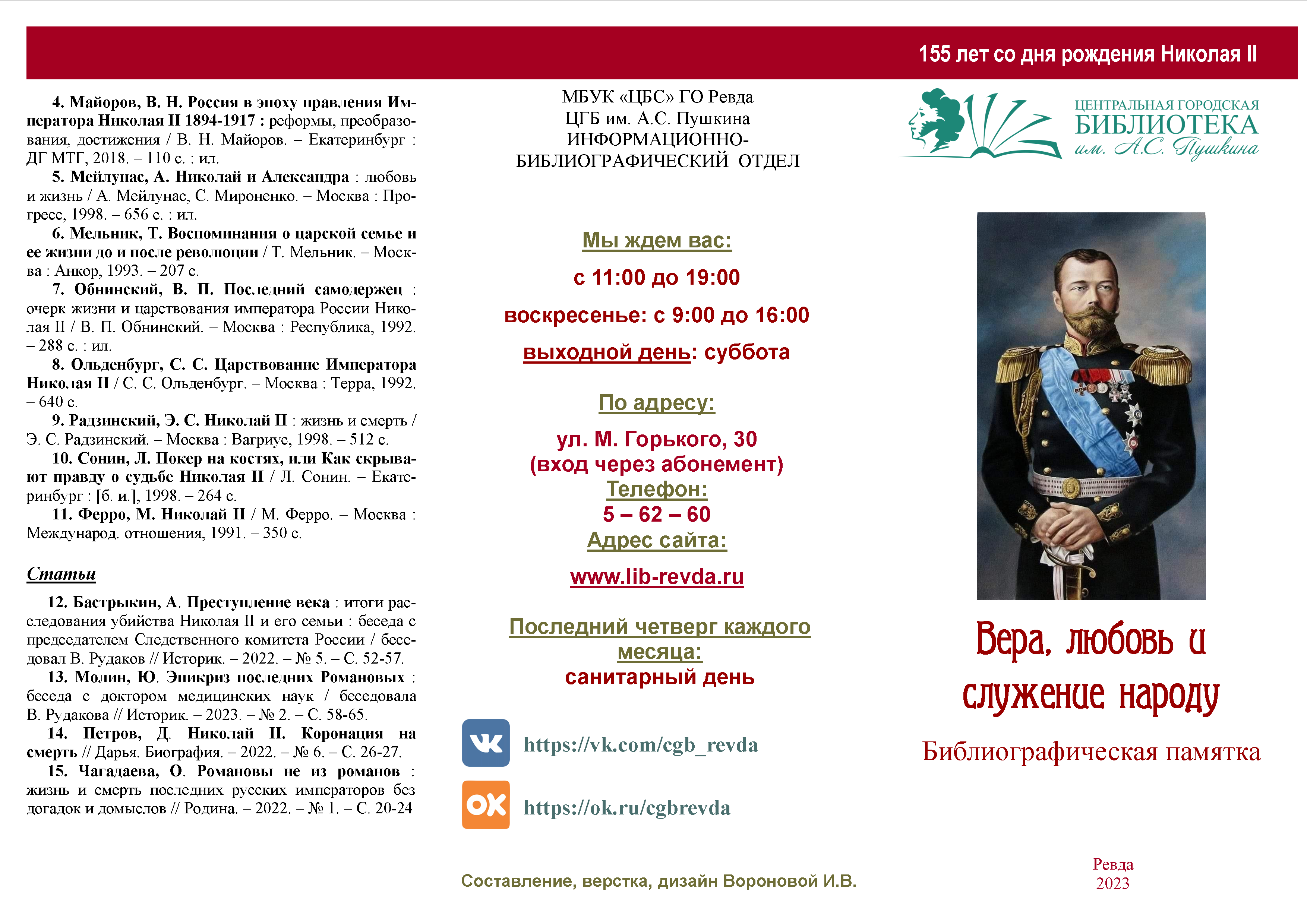 Библиографический список к 225-летию