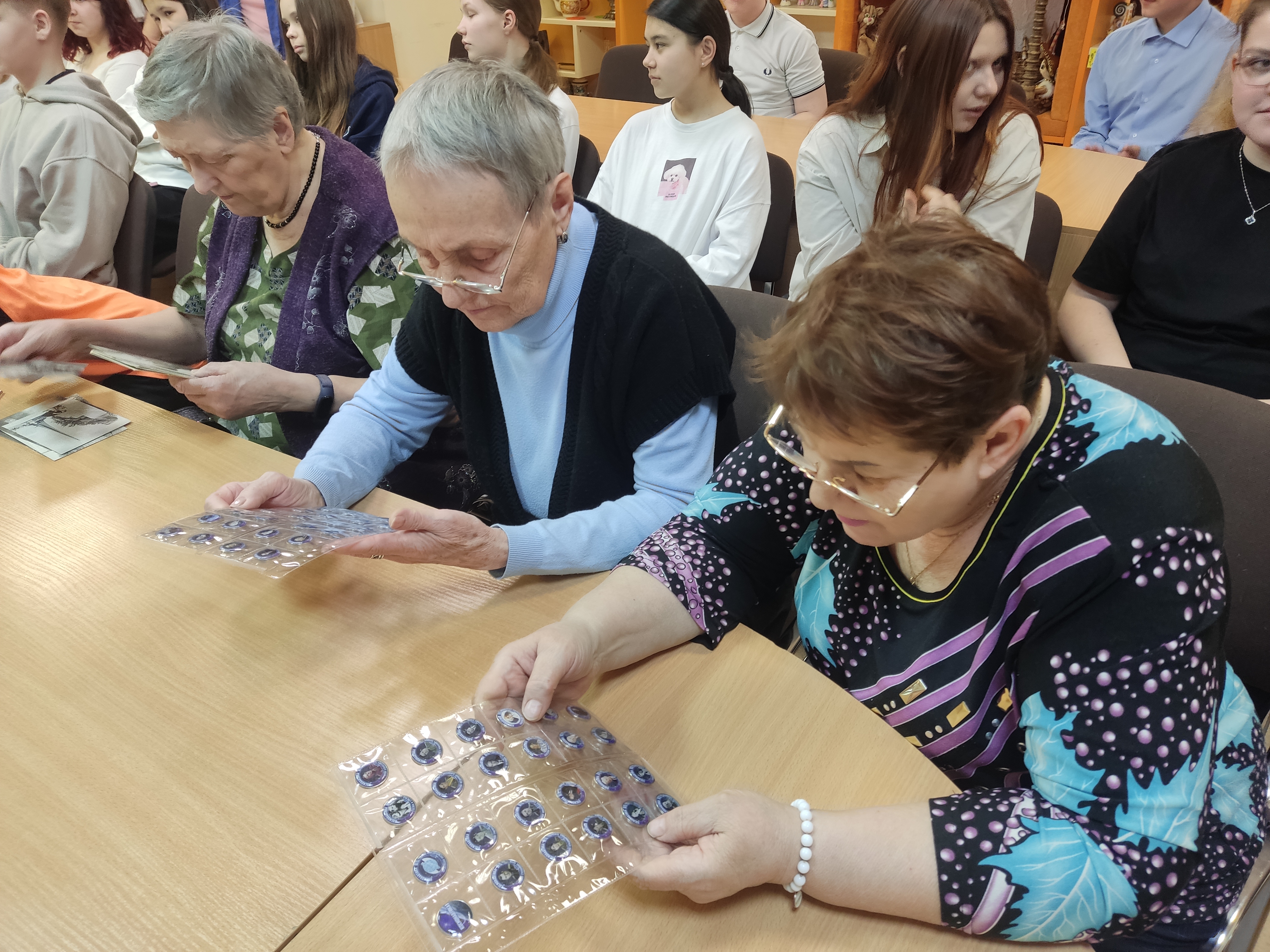 Настоящим украшением встречи стала выставка значков и монет из коллекции председателя клуба коллекционеров «Талисман» Сергея Владимировича Тетерина — эти маленькие реликвии напомнили о большой истории. В завершение каждый участник получил памятную книжную закладку с рекомендацией для чтения литературы о Великой Отечественной войне.