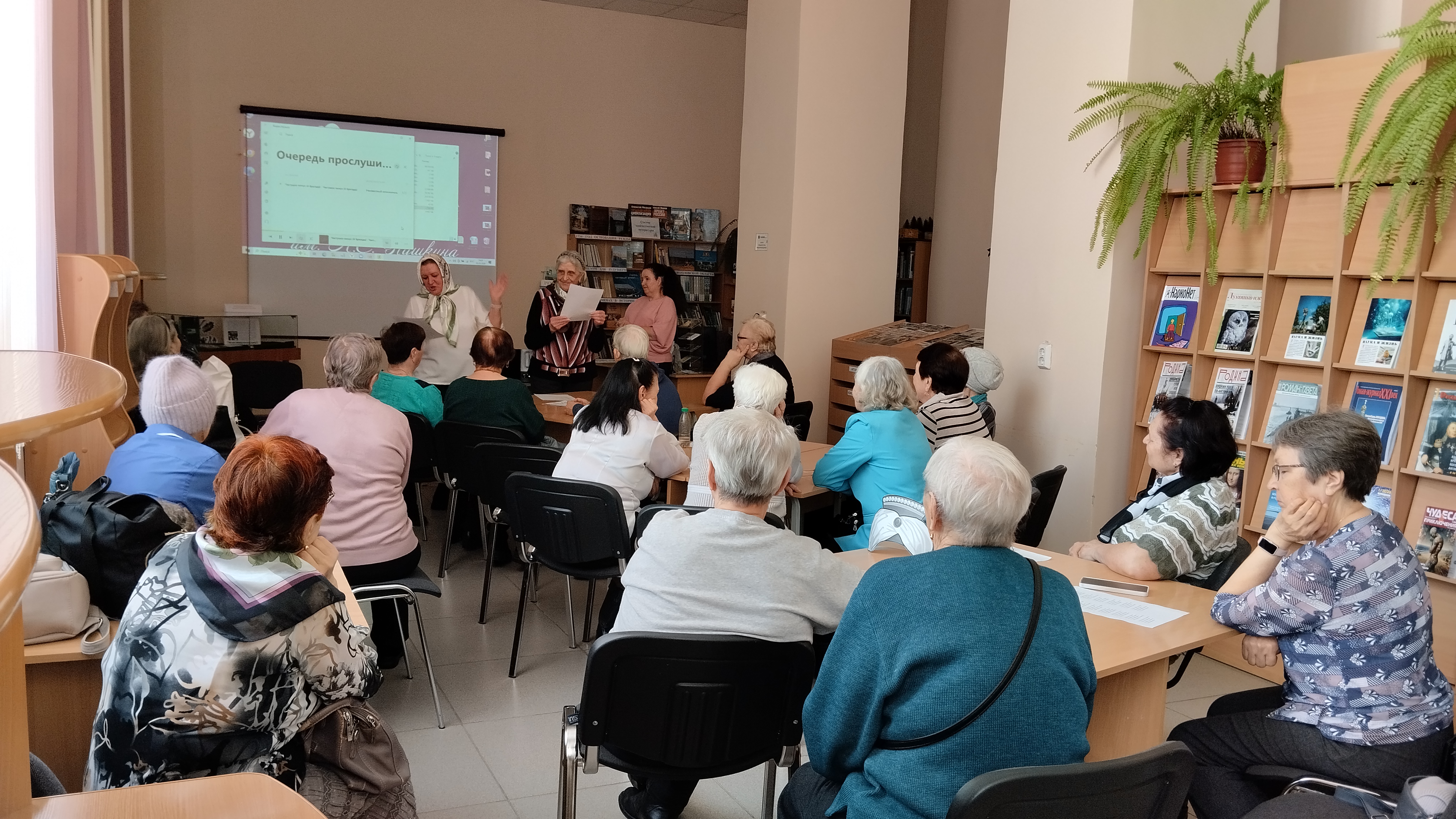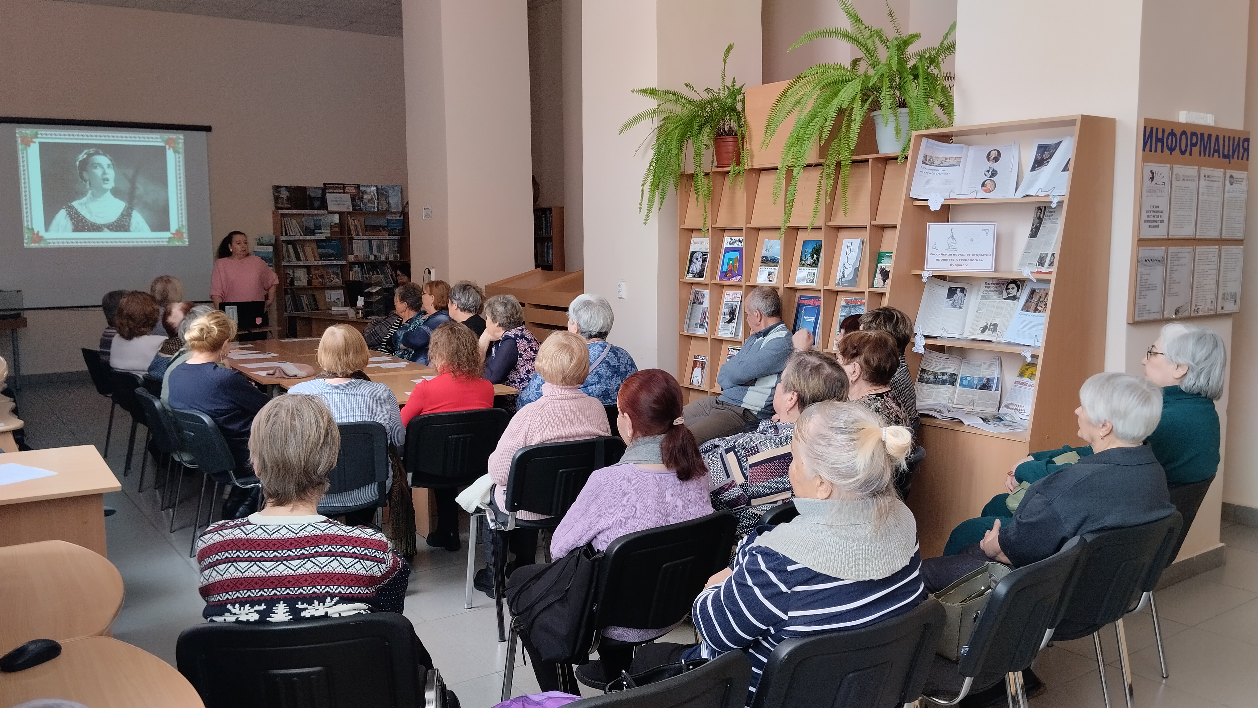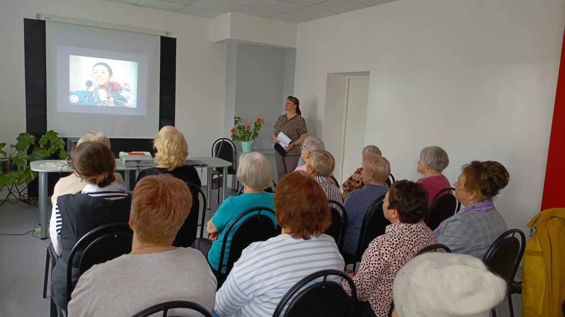Ветераны с большим интересом слушали рассказ библиотекаря Тюриковой Е.В. о театральной карьере актрисы и о её первых съёмках в кино. В кинематографе Екатерина Васильева не была зажата рамками одного амплуа, свободно переходила от комедийных ролей к драматическим образам.