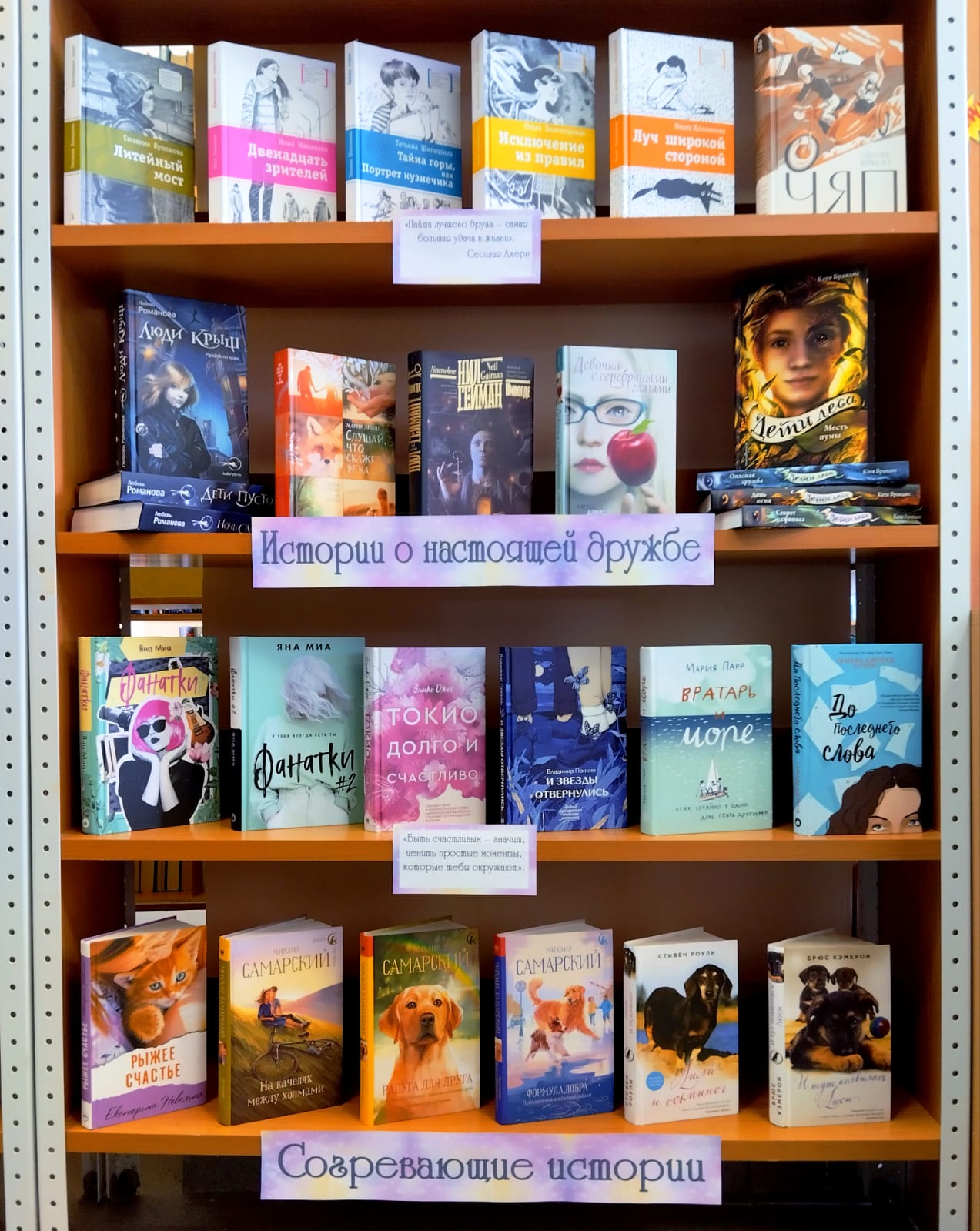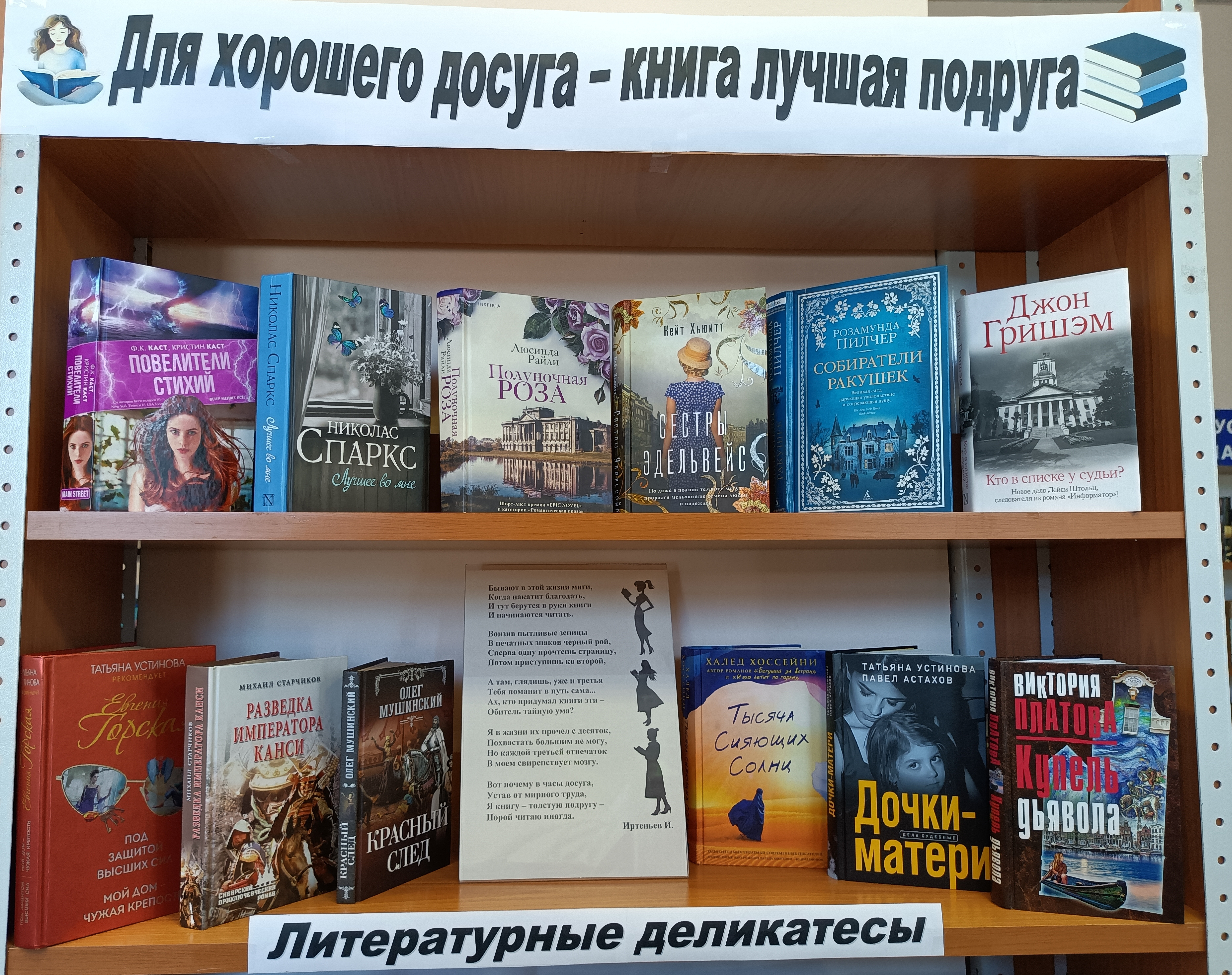 Эта книжная выставка идеально подойдет любому читателю, ведь здесь каждый найдет книгу себе по душе. Наслаждайтесь уютной атмосферой библиотеки, знакомьтесь с новыми героями и окунитесь в волшебный мир чувств и эмоций!