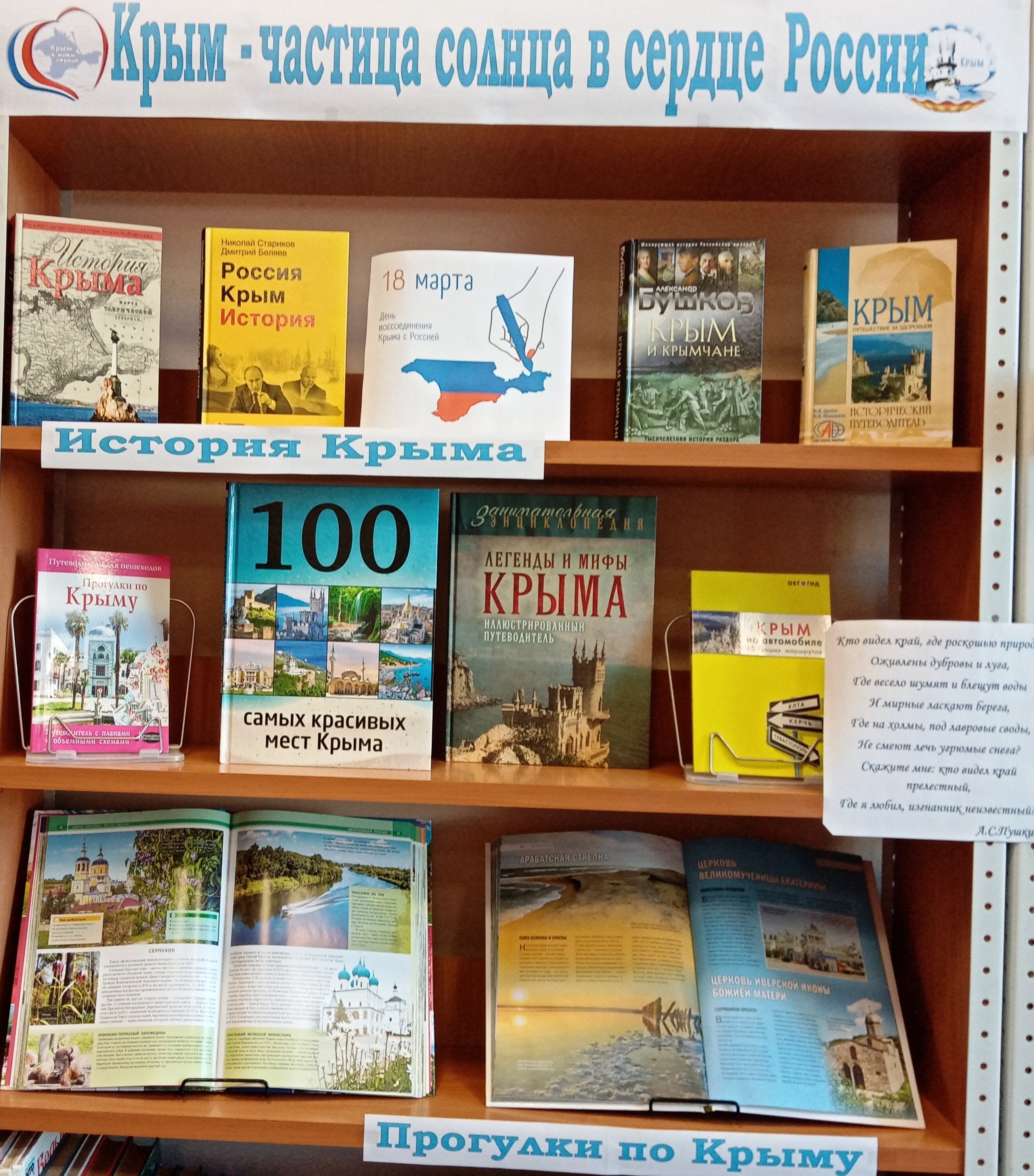 В преддверии Дня воссоединения Крыма с Россией на абонементе библиотеки открылась новая книжная выставка, посвященная этой солнечной земле.