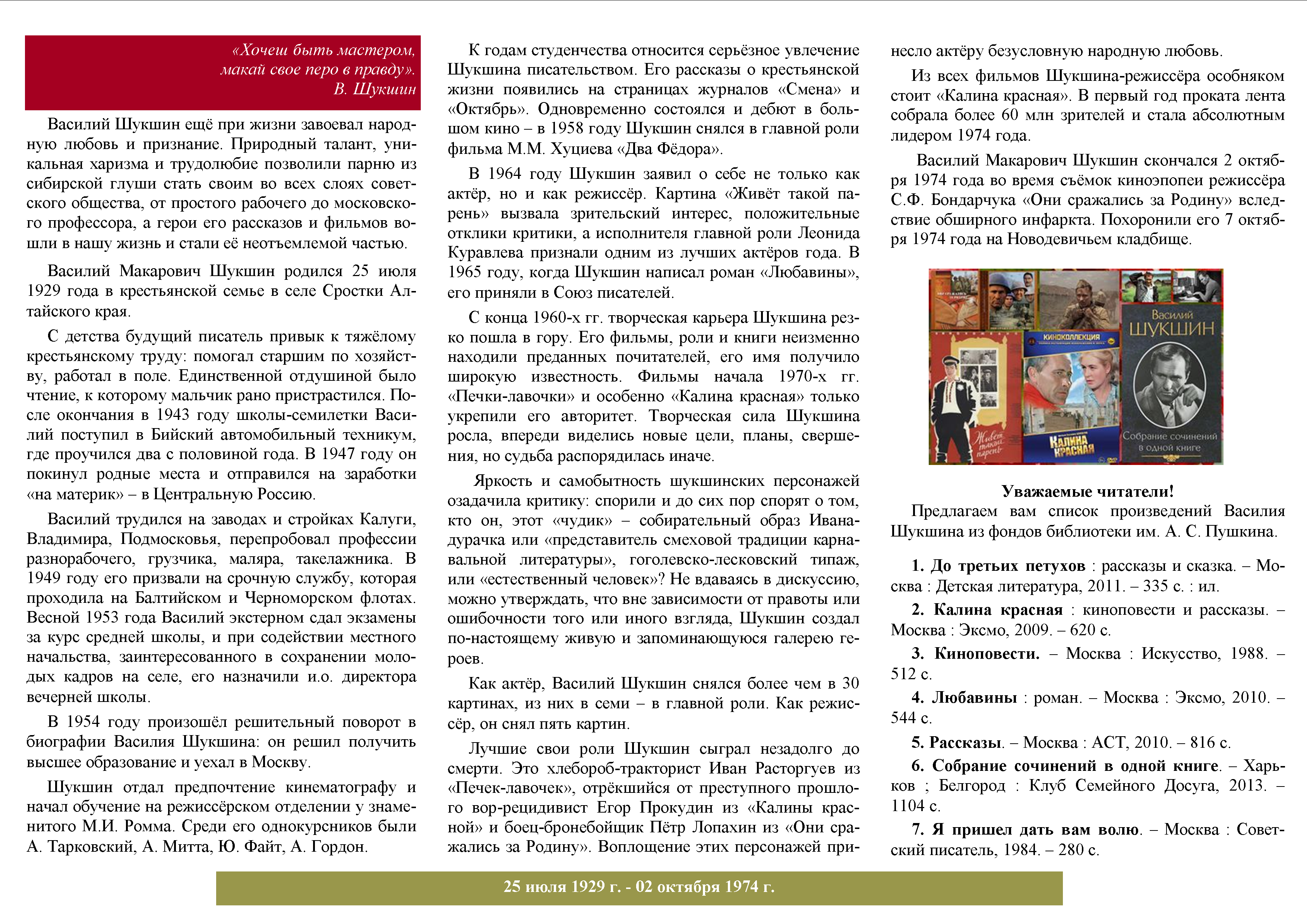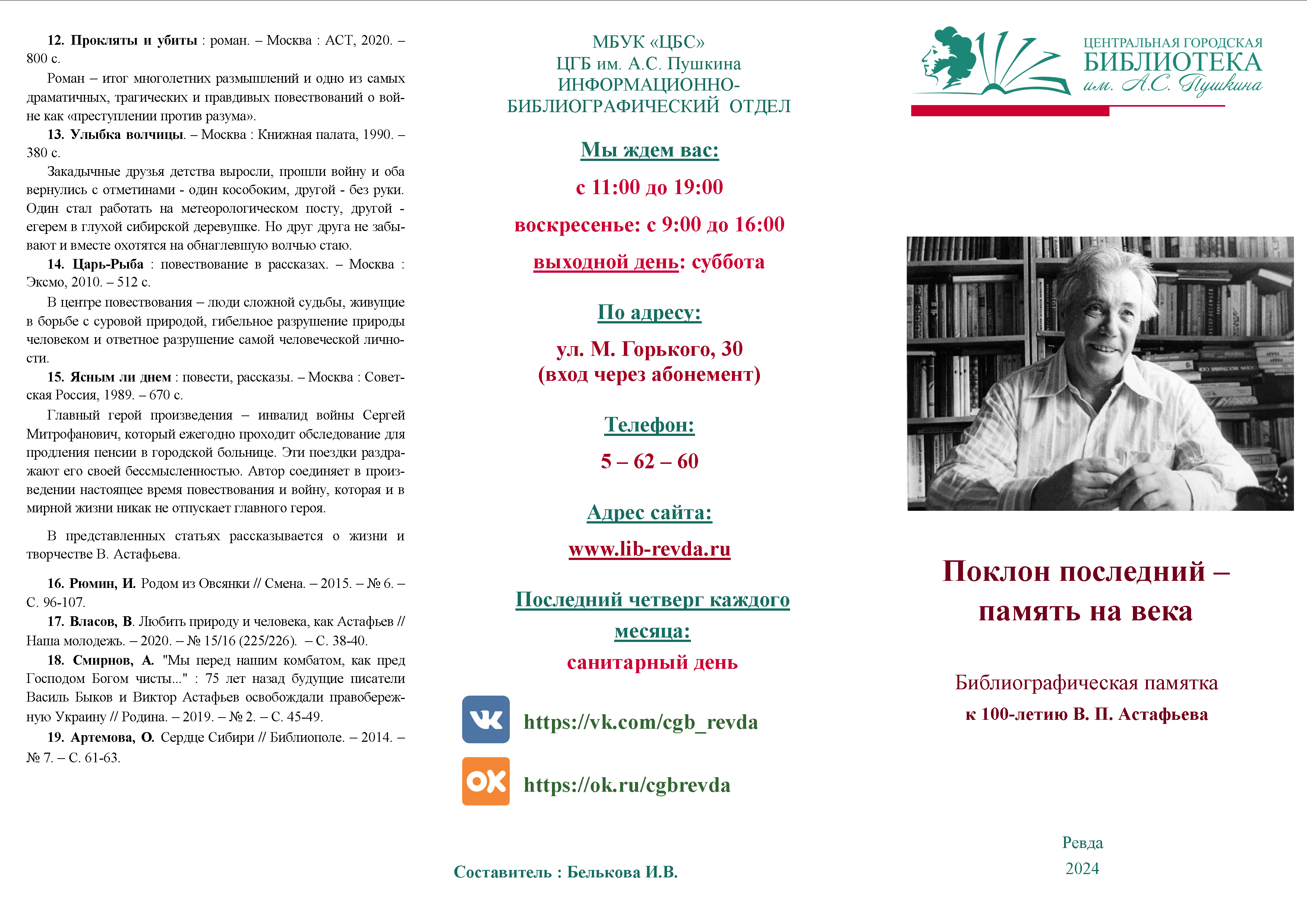 Библиографическая памятка к 100-летию В. П. Астафьева