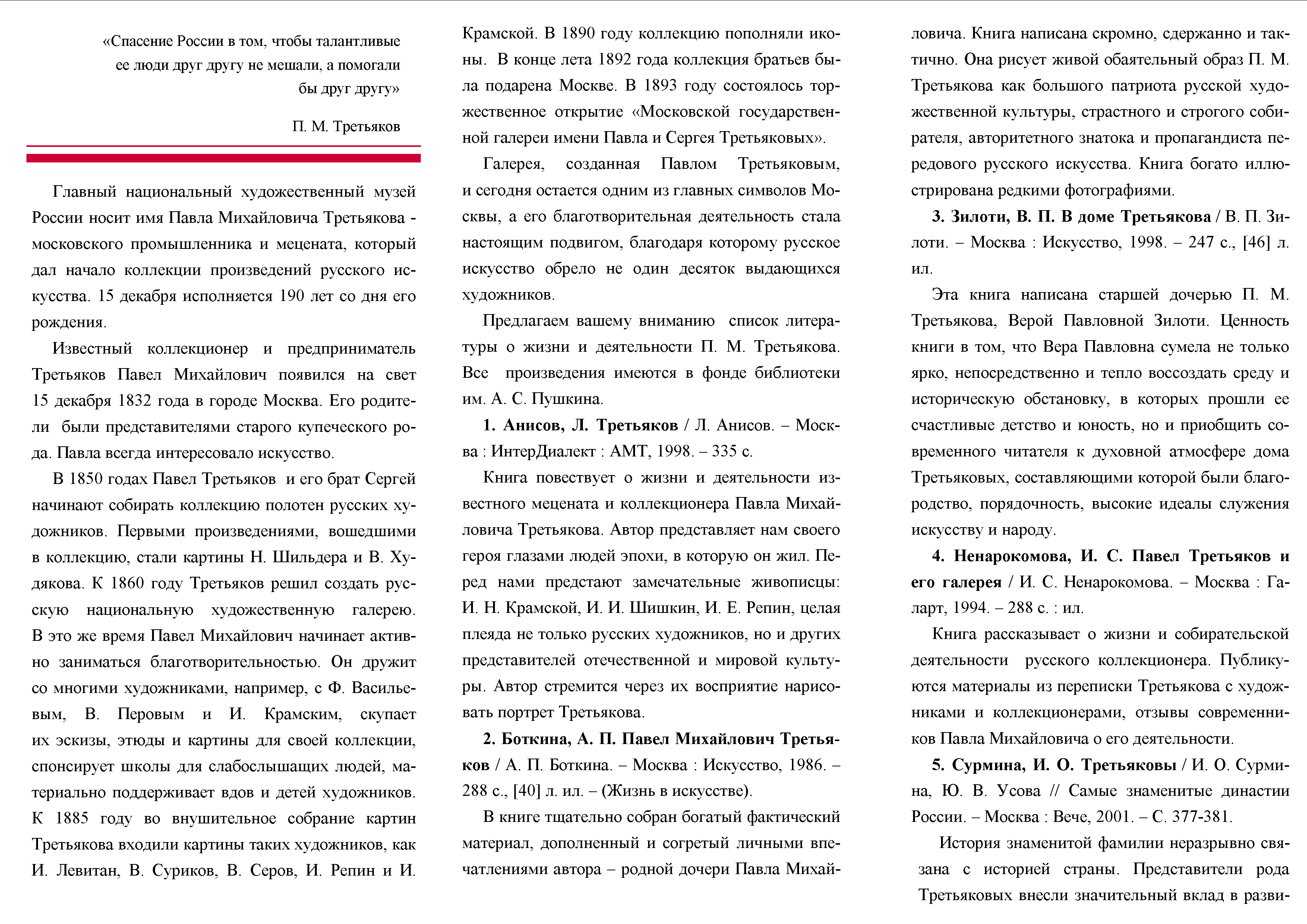 Библиографический списокк 190-летию П. М. Третьякова