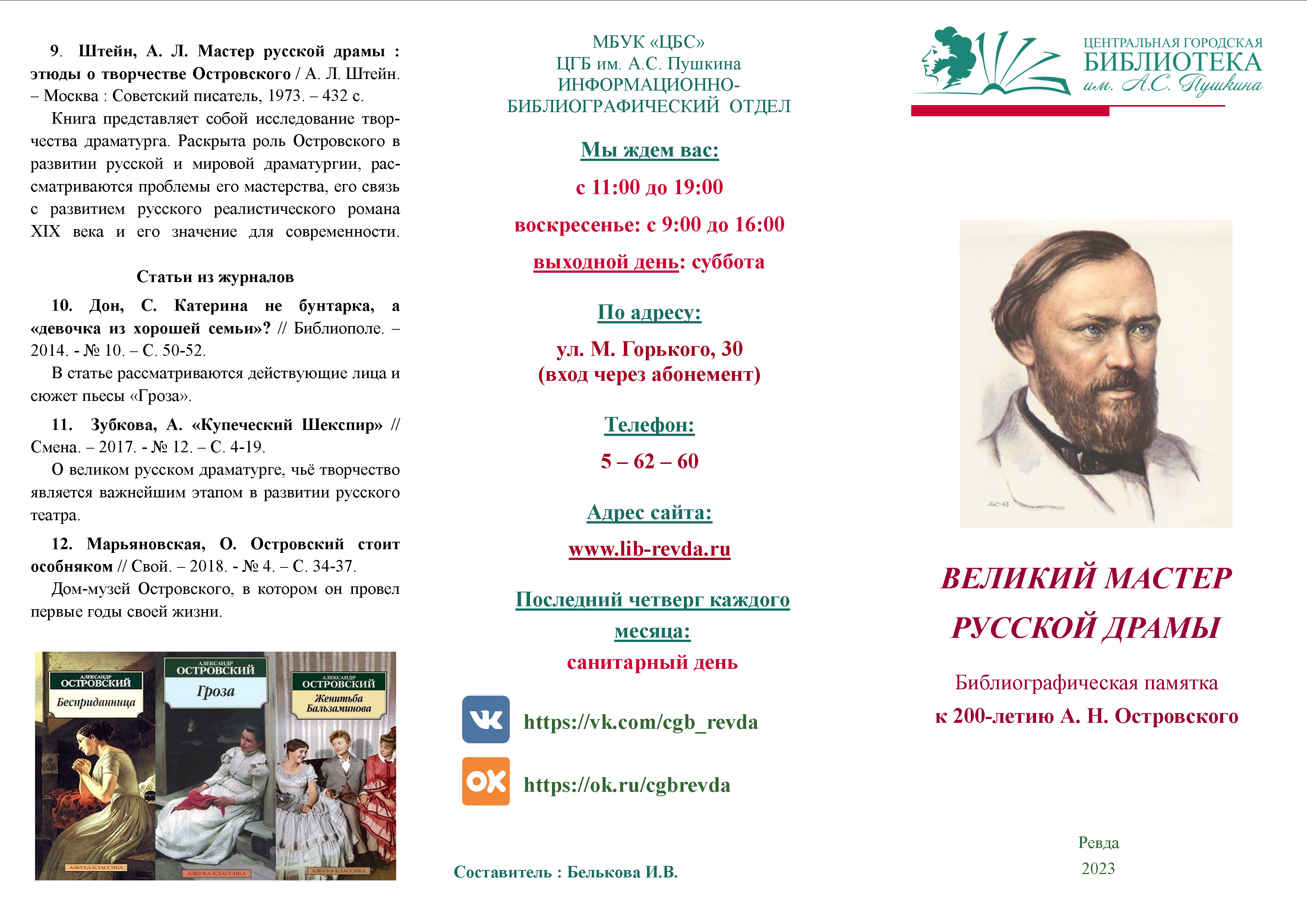Библиографическая памятка к 200-летию А. Н. Островского