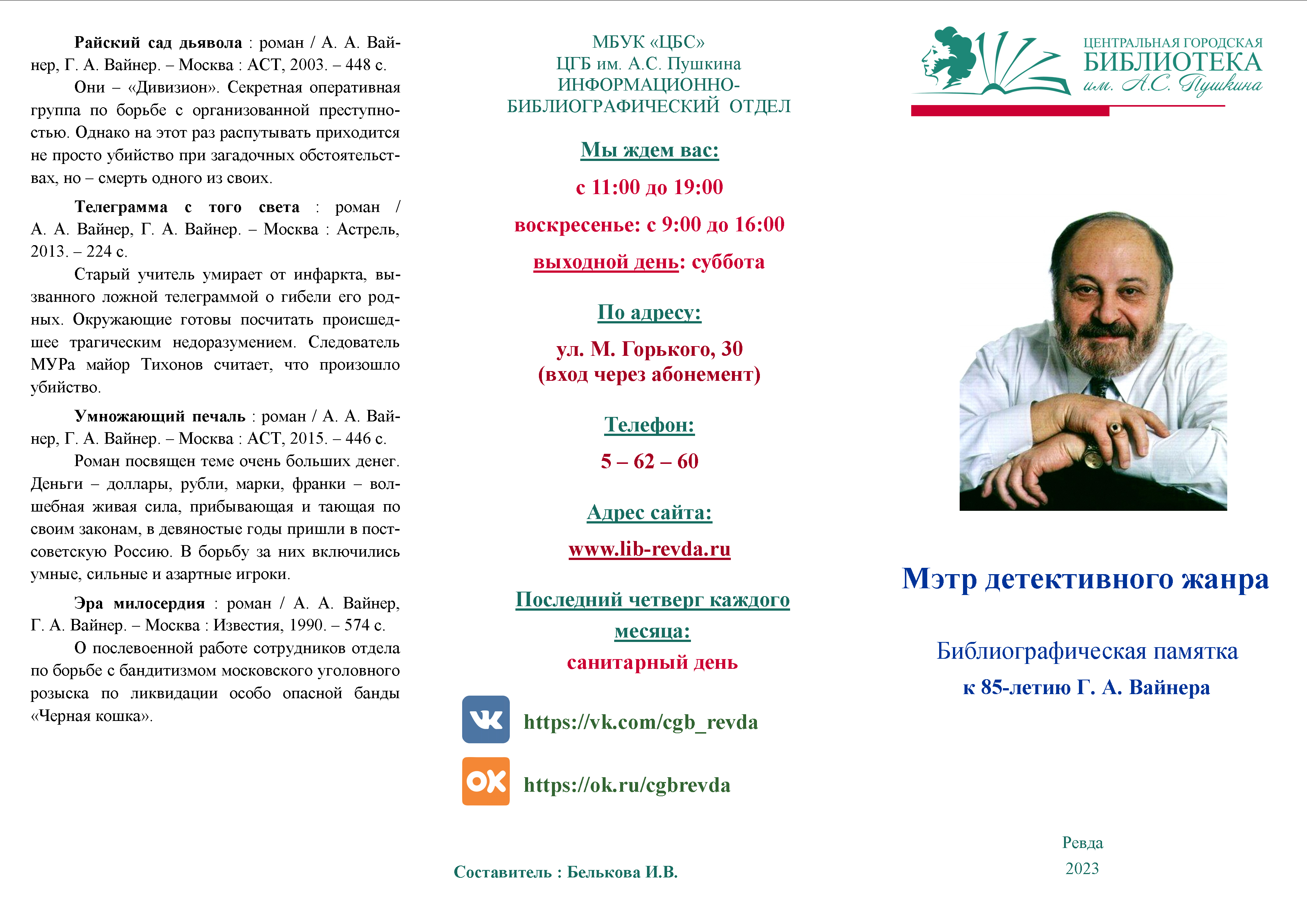 Библиографическая памятка к 85-летию Г. А. Вайнера