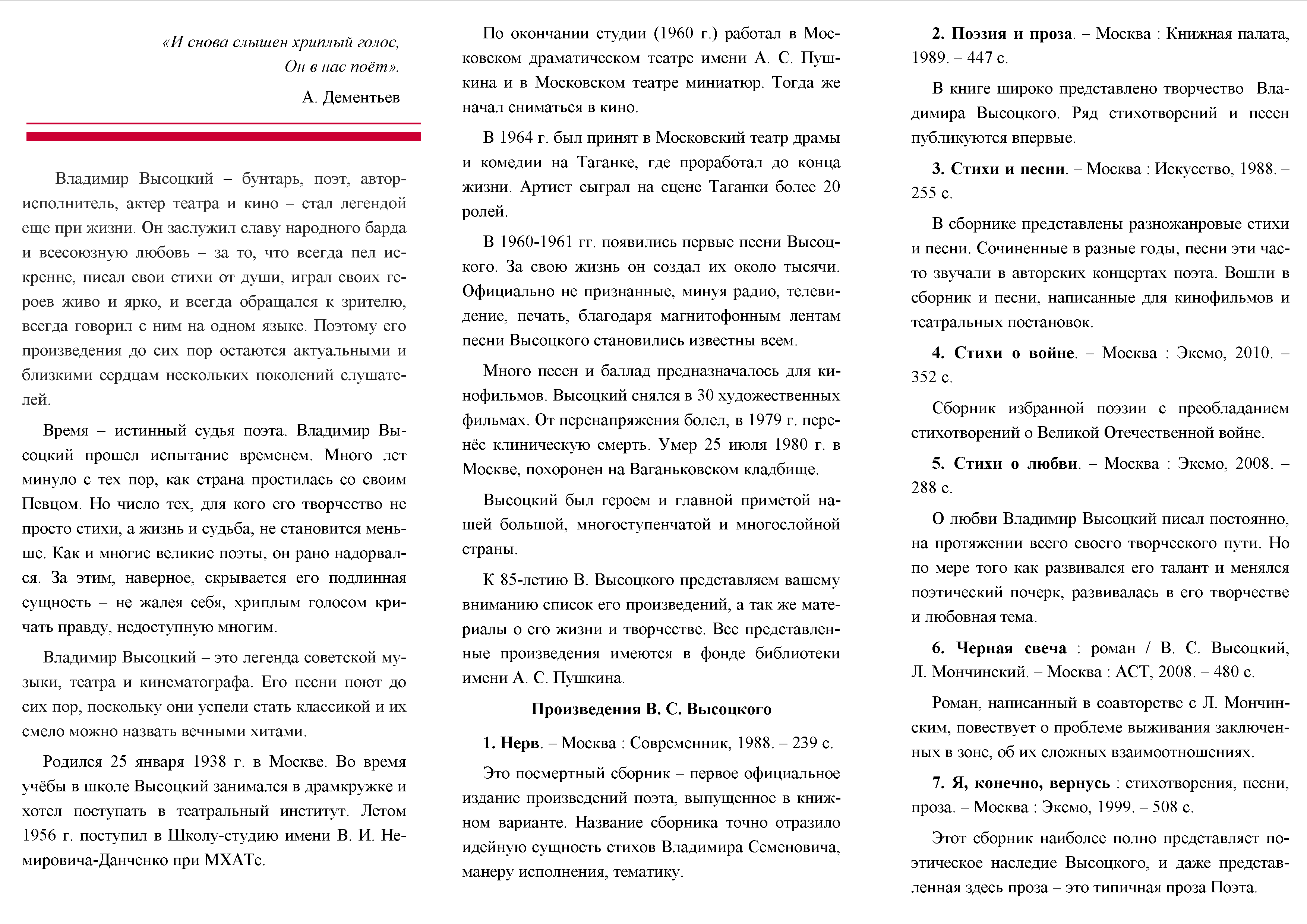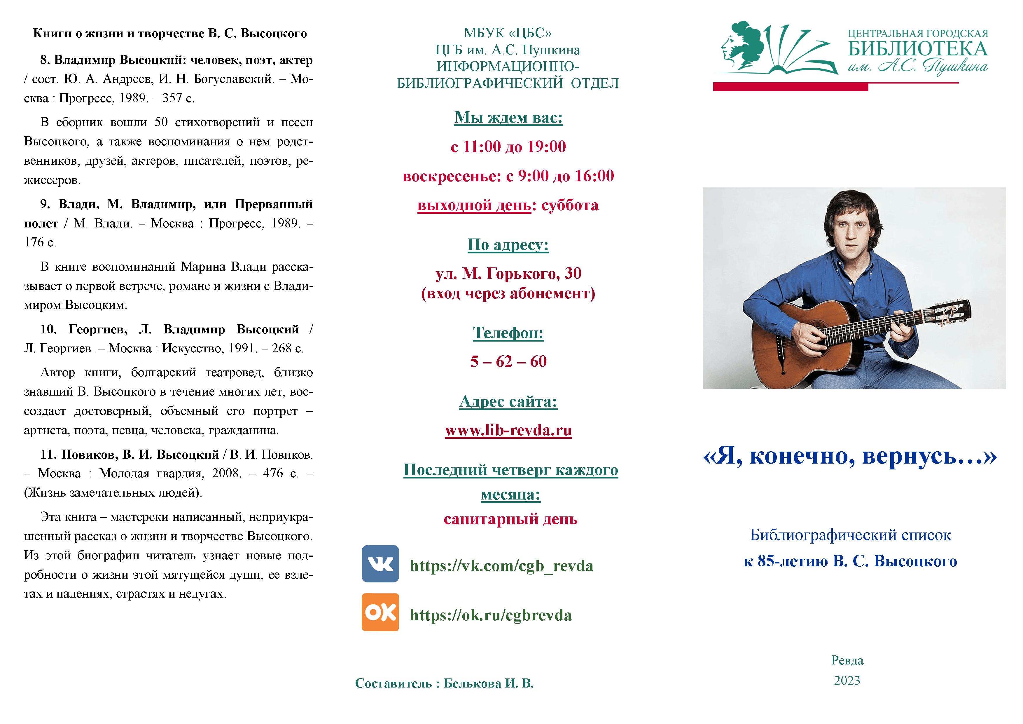 Библиографический список к 85-летию В. С. Высоцкого