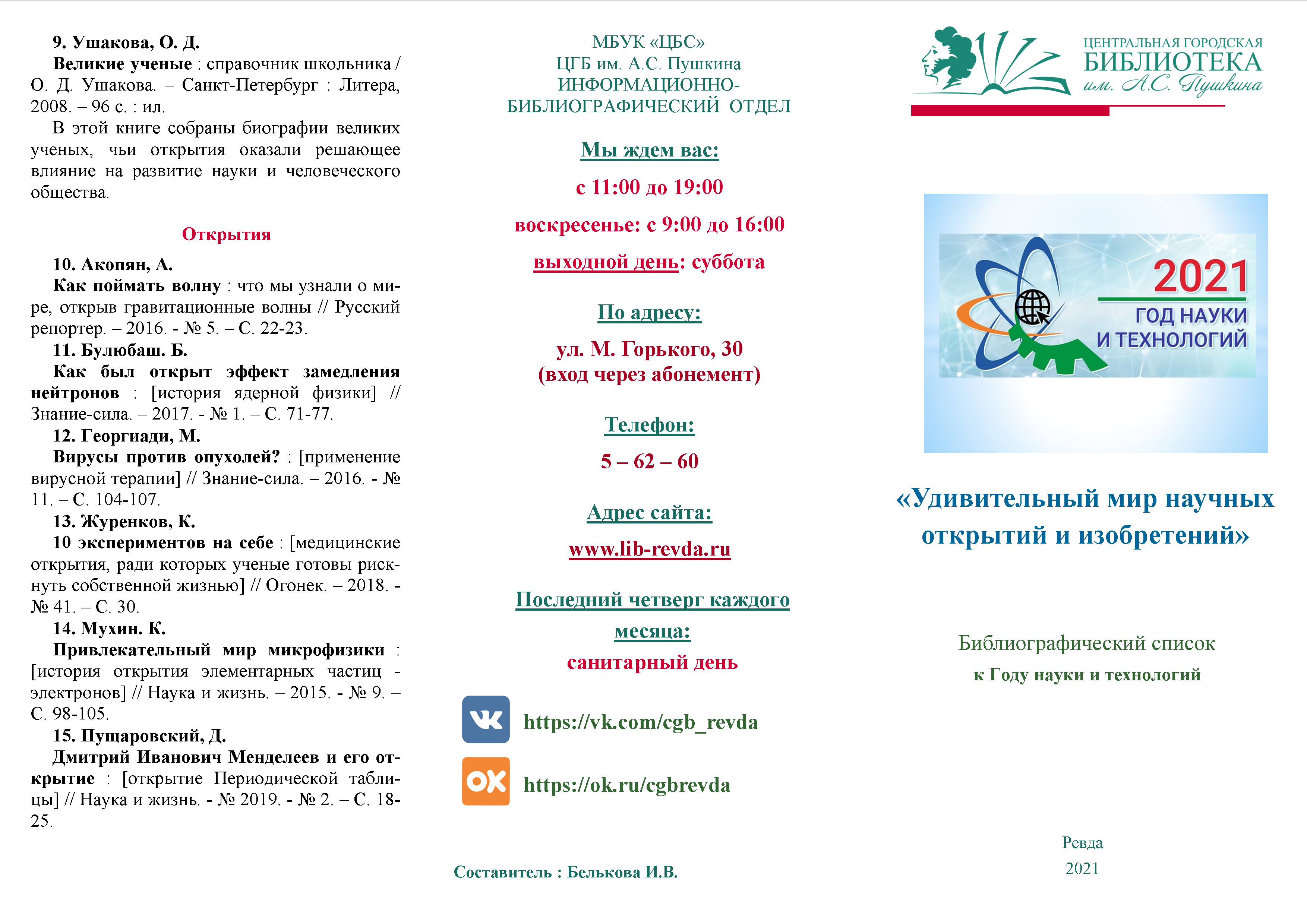 Библиографический список к Году науки и технологий