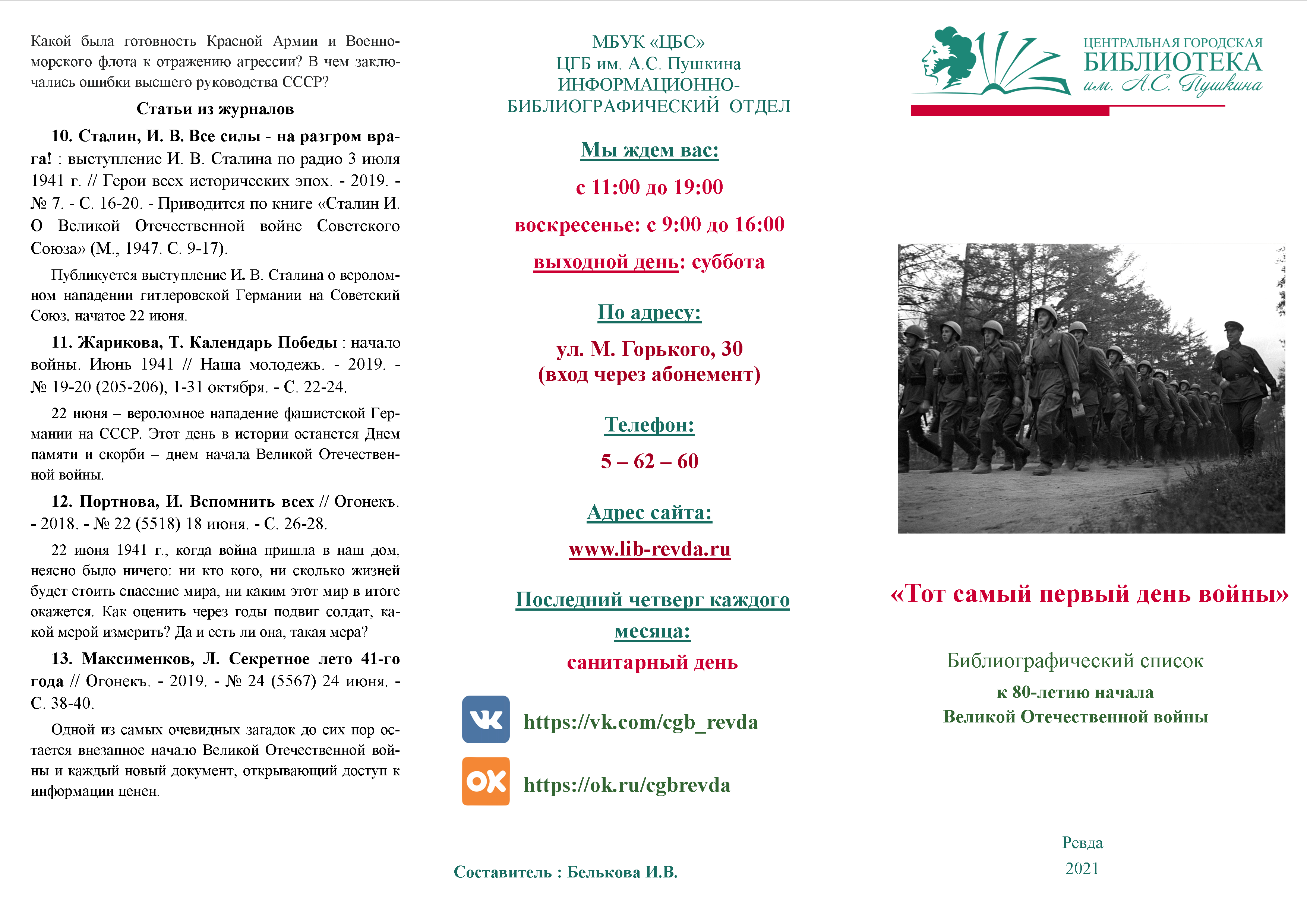 Библиографический список к 80-летию начала Великой Отечественной войны