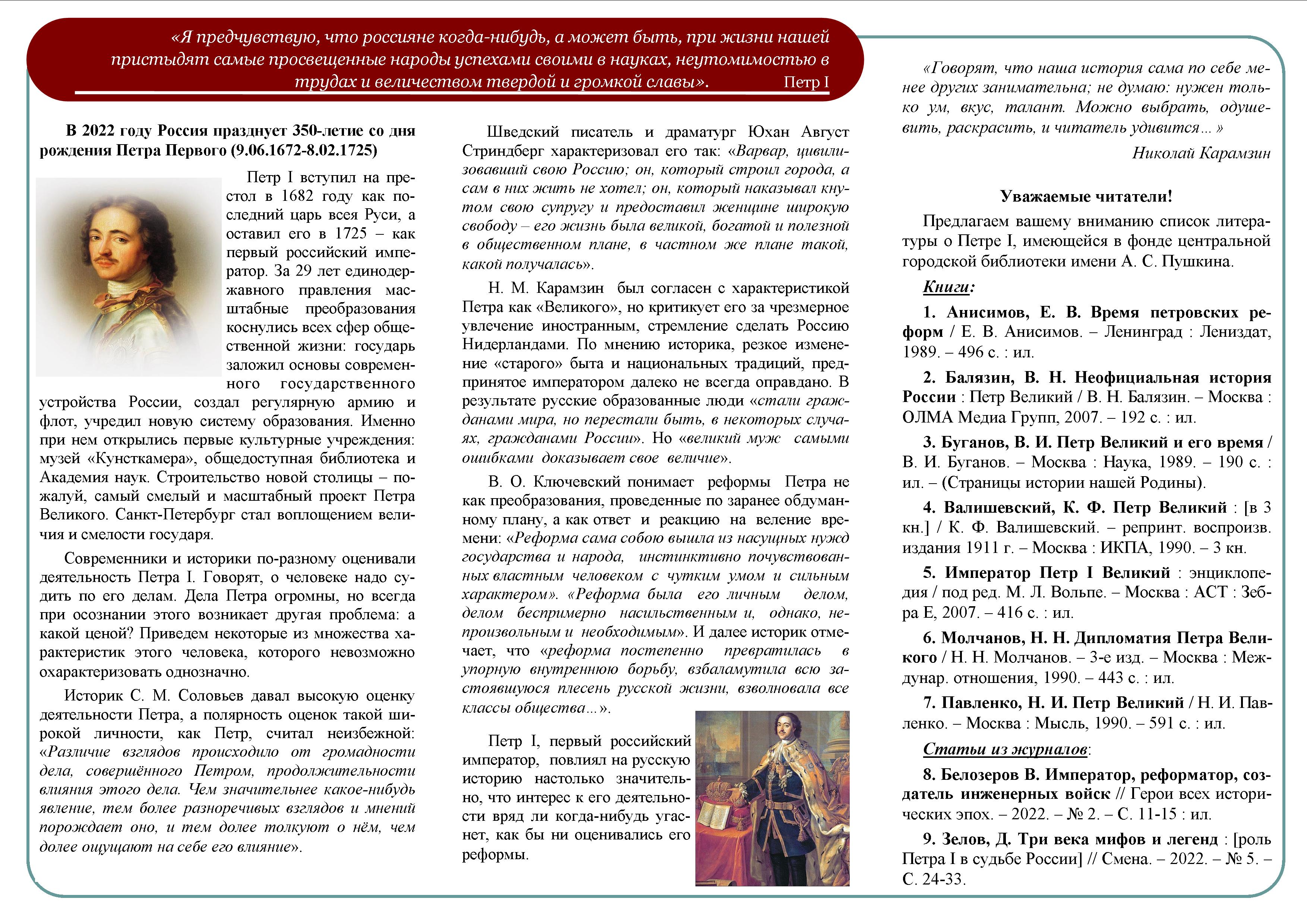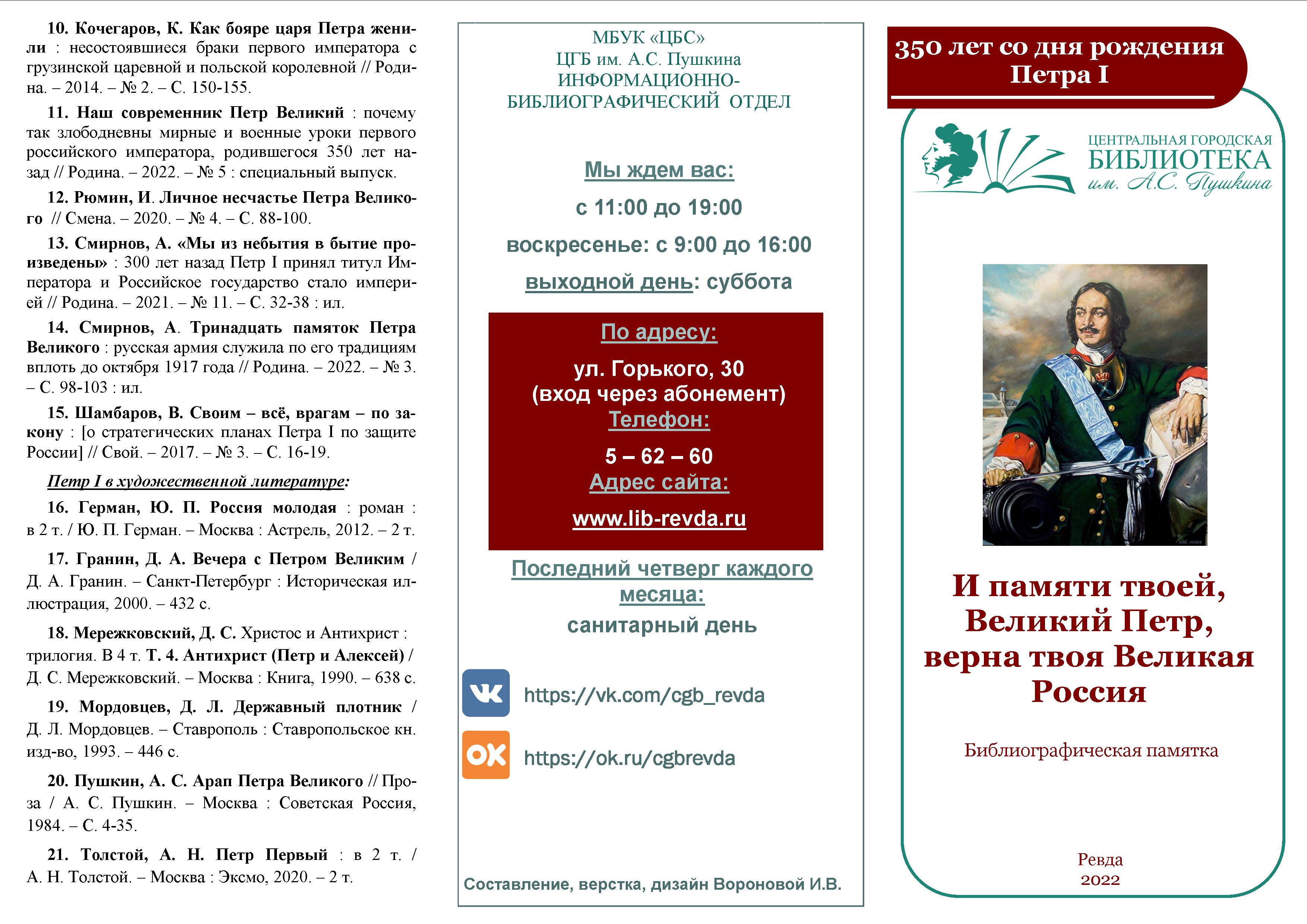 Библиографический список к 225-летию