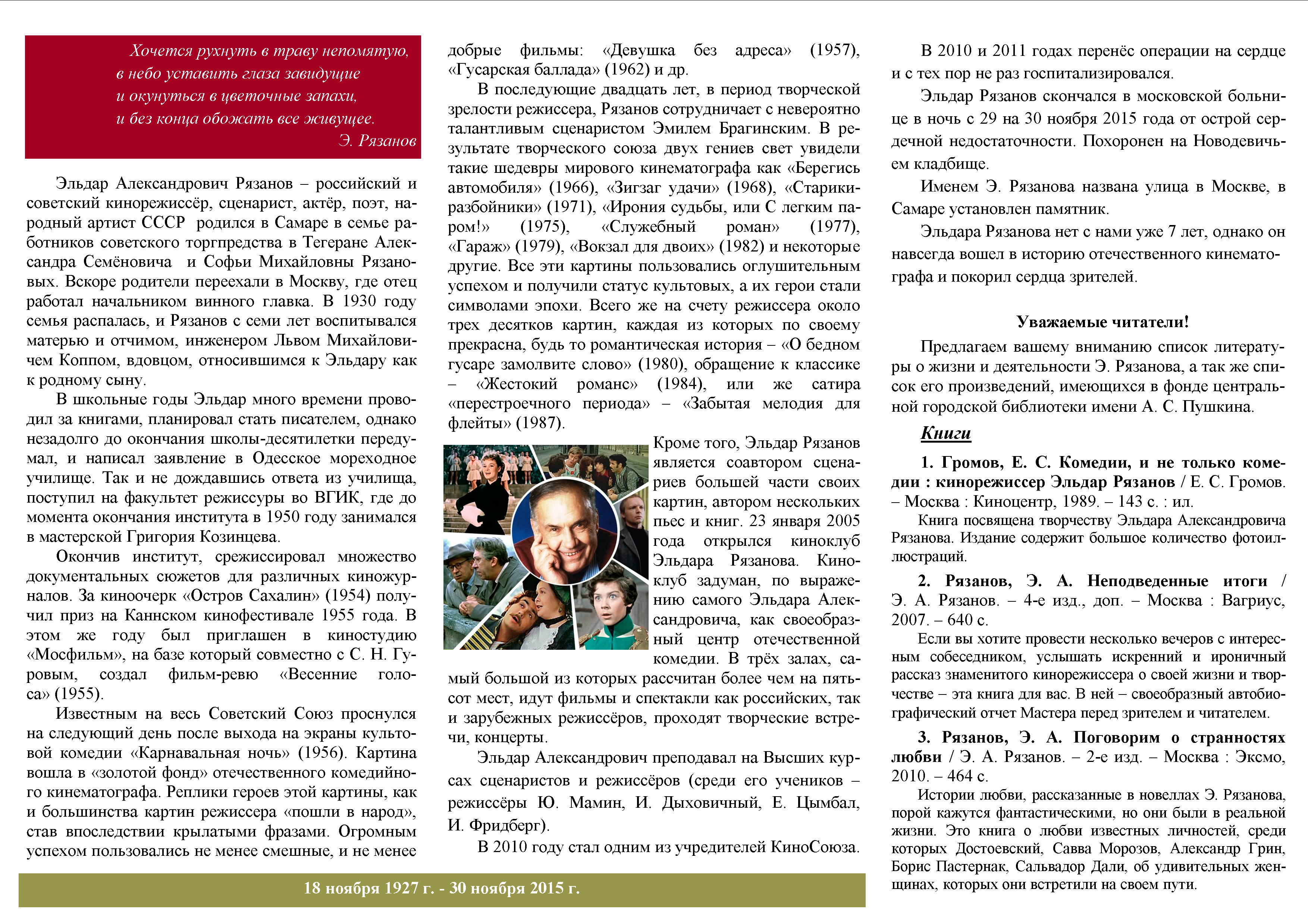 95 лет со дня рождения Э. А. Рязанова