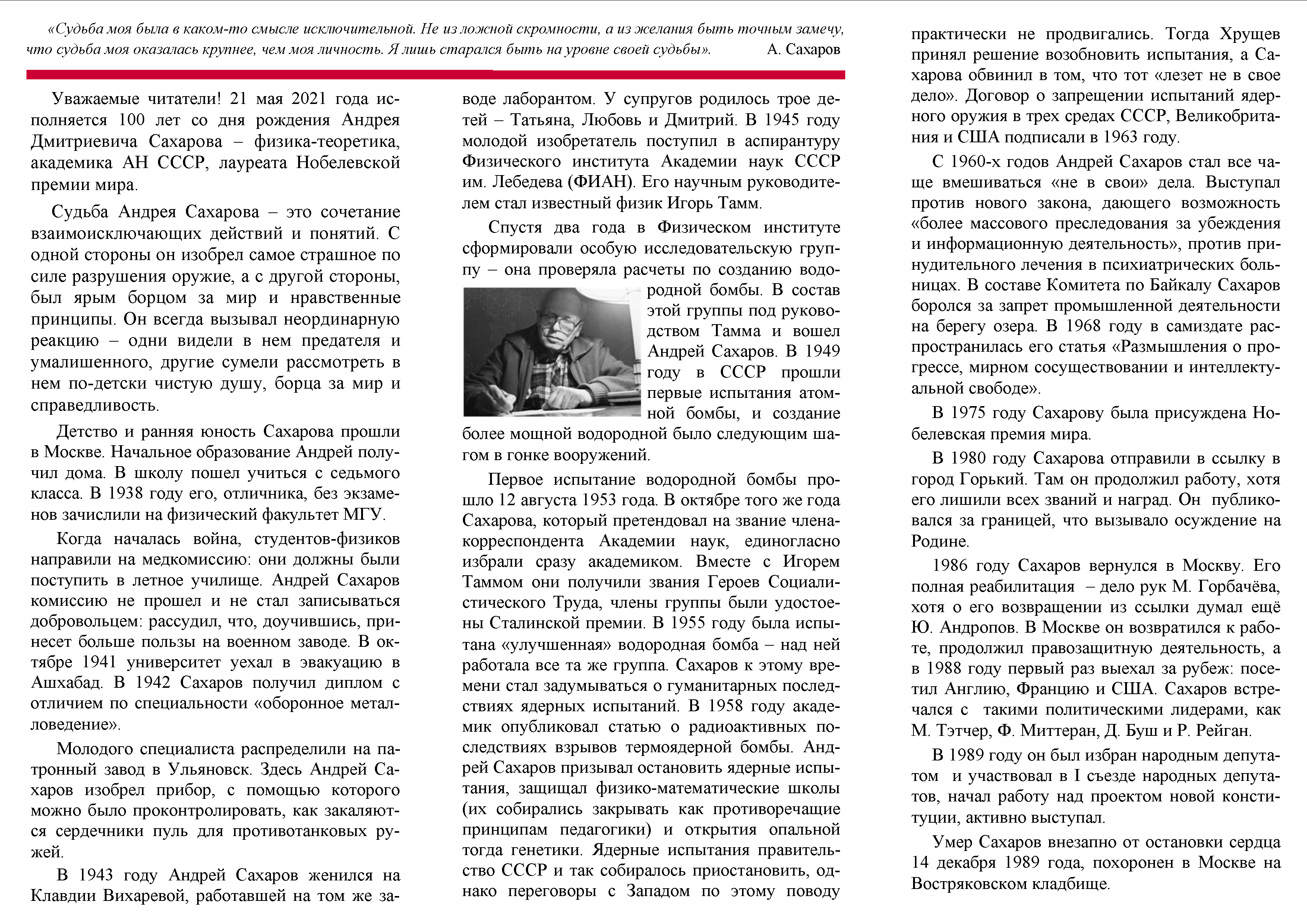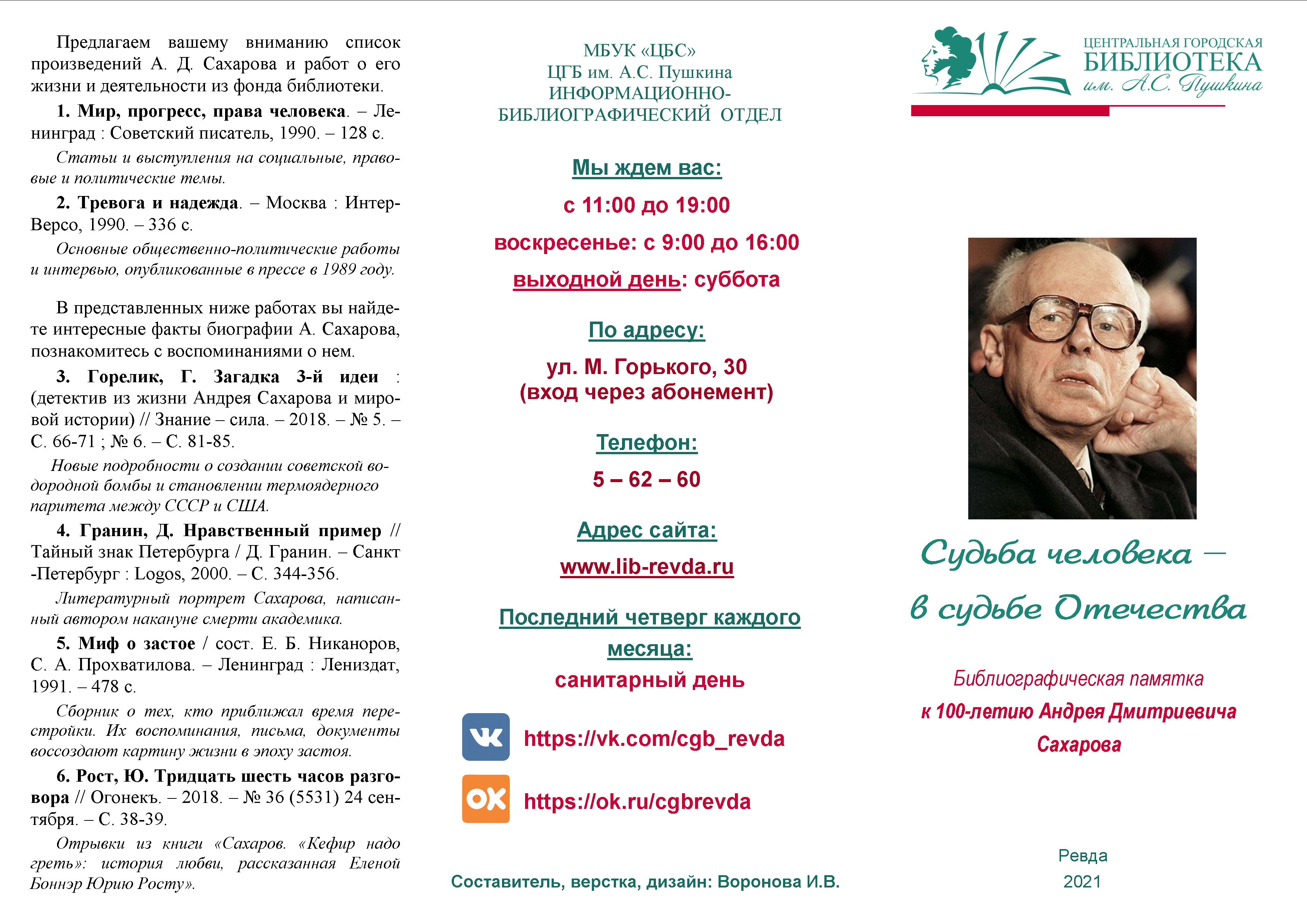 Библиографическая памятка к 100-летию Андрея Дмитриевича Сахарова
