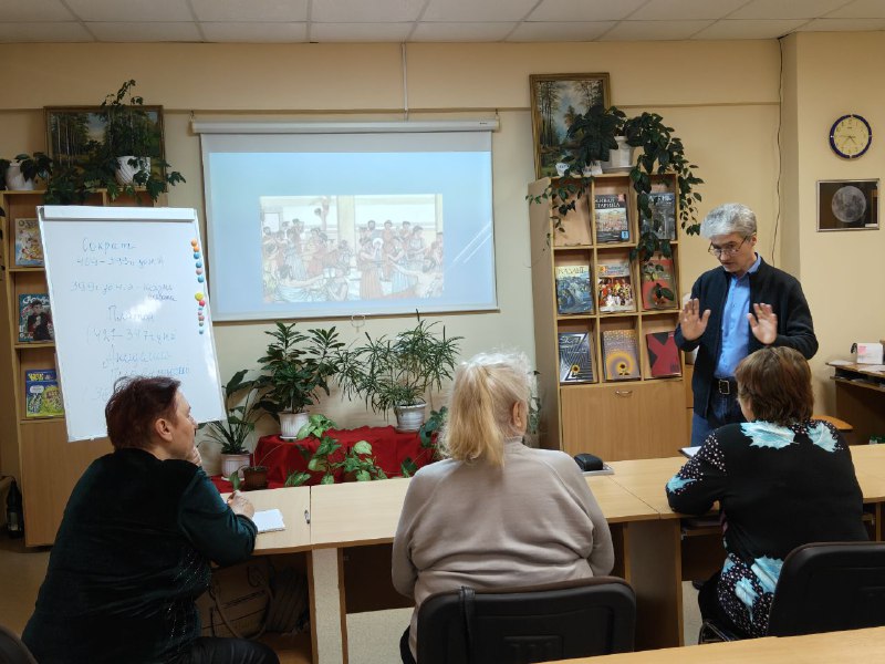 Уже три месяца в библиотеке проходит философский кружок «Территория мысли», где участники вместе с ведущим Денисом Зайцевым обсуждают важные и глубокие темы.