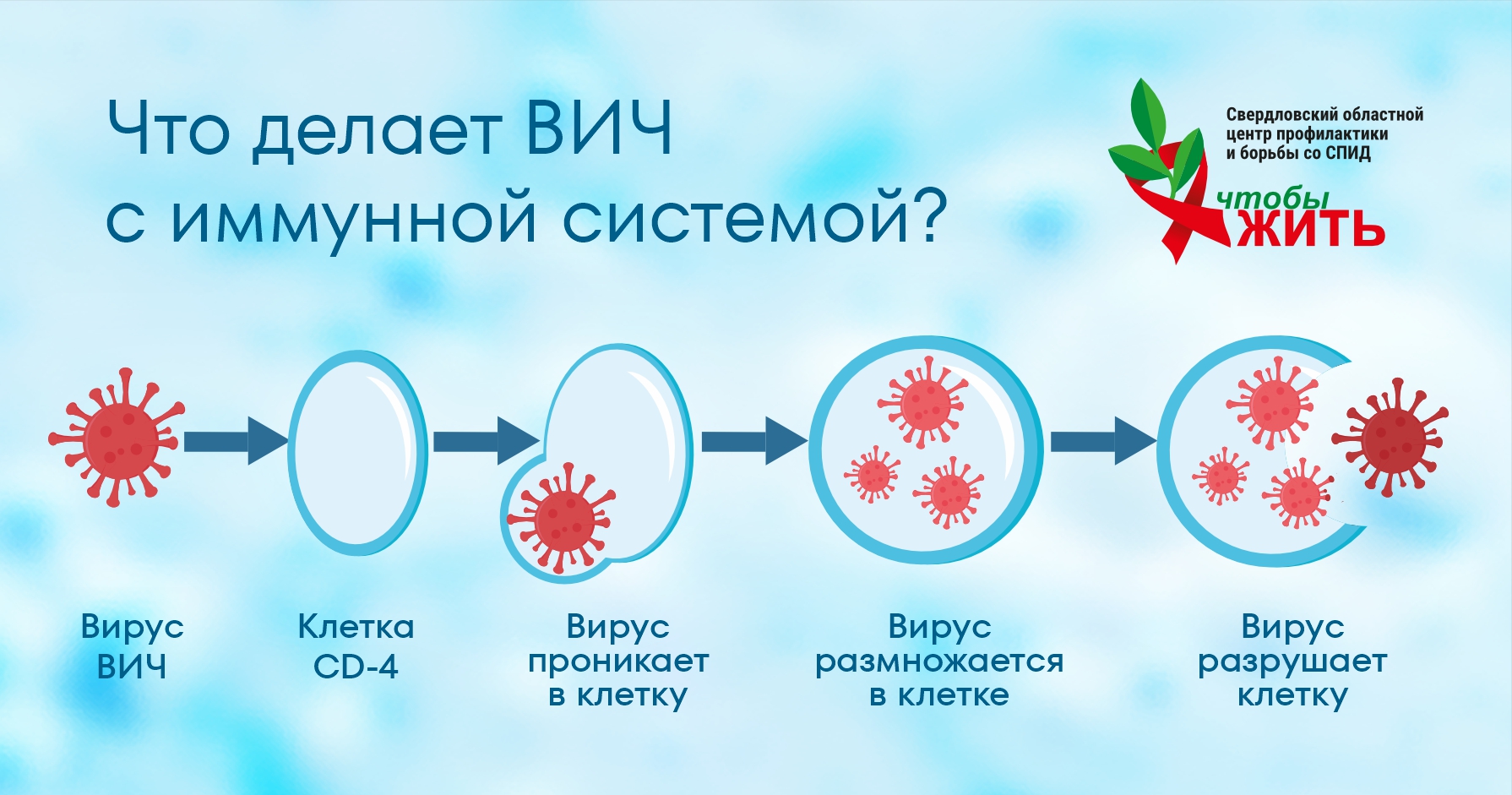 Но важно понимать: это происходит не сразу. Иммунитет долго может держать равновесие. Именно поэтому человек с ВИЧ чувствует себя нормально долгие годы.